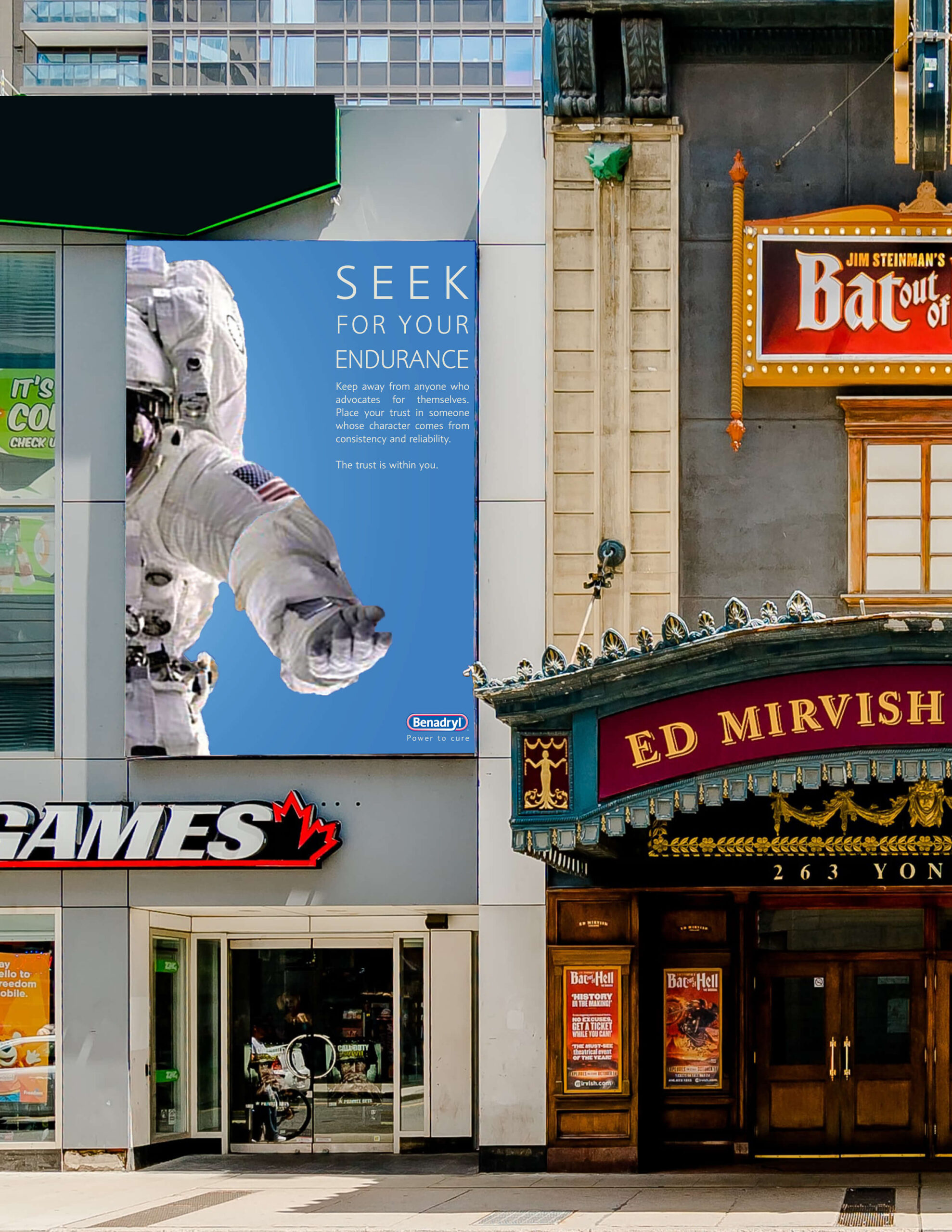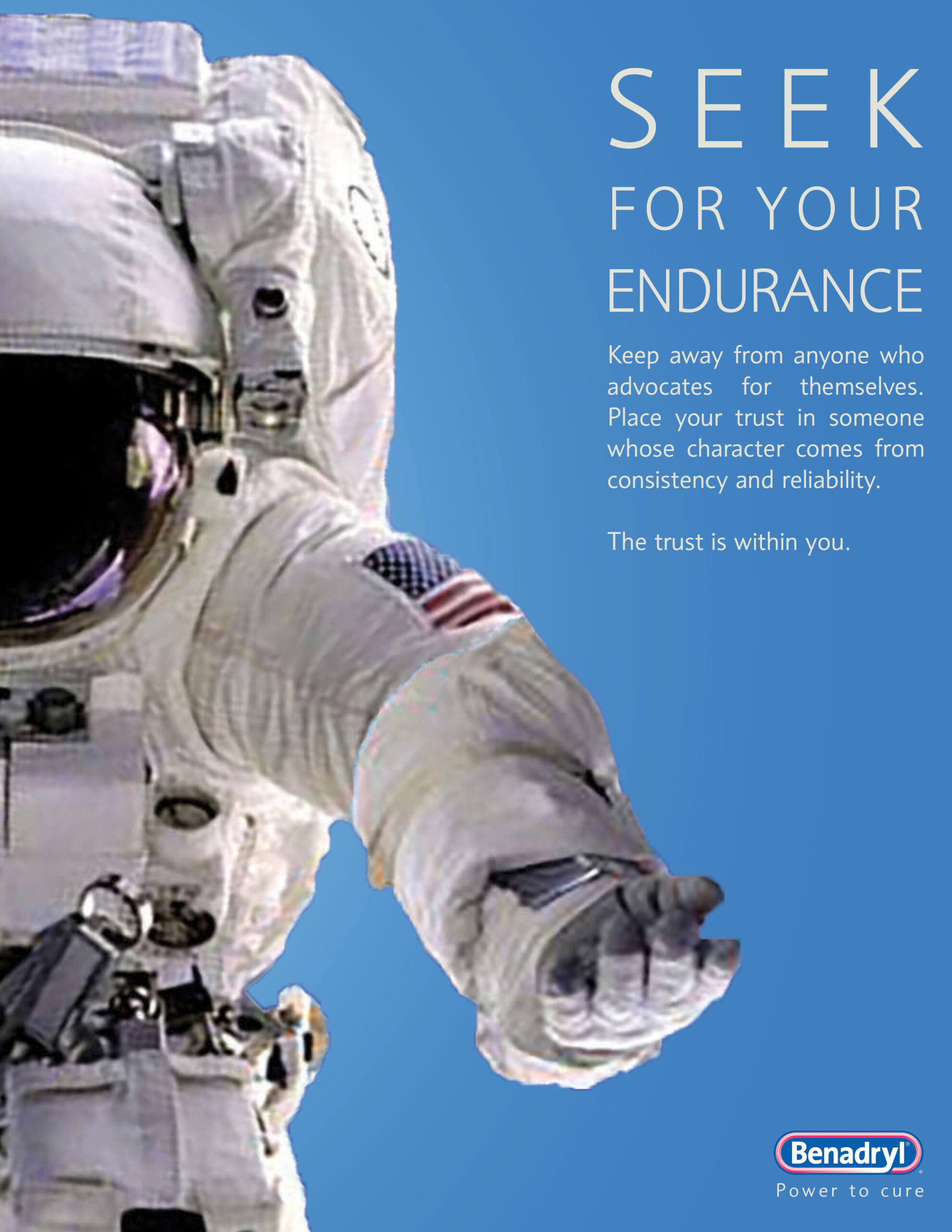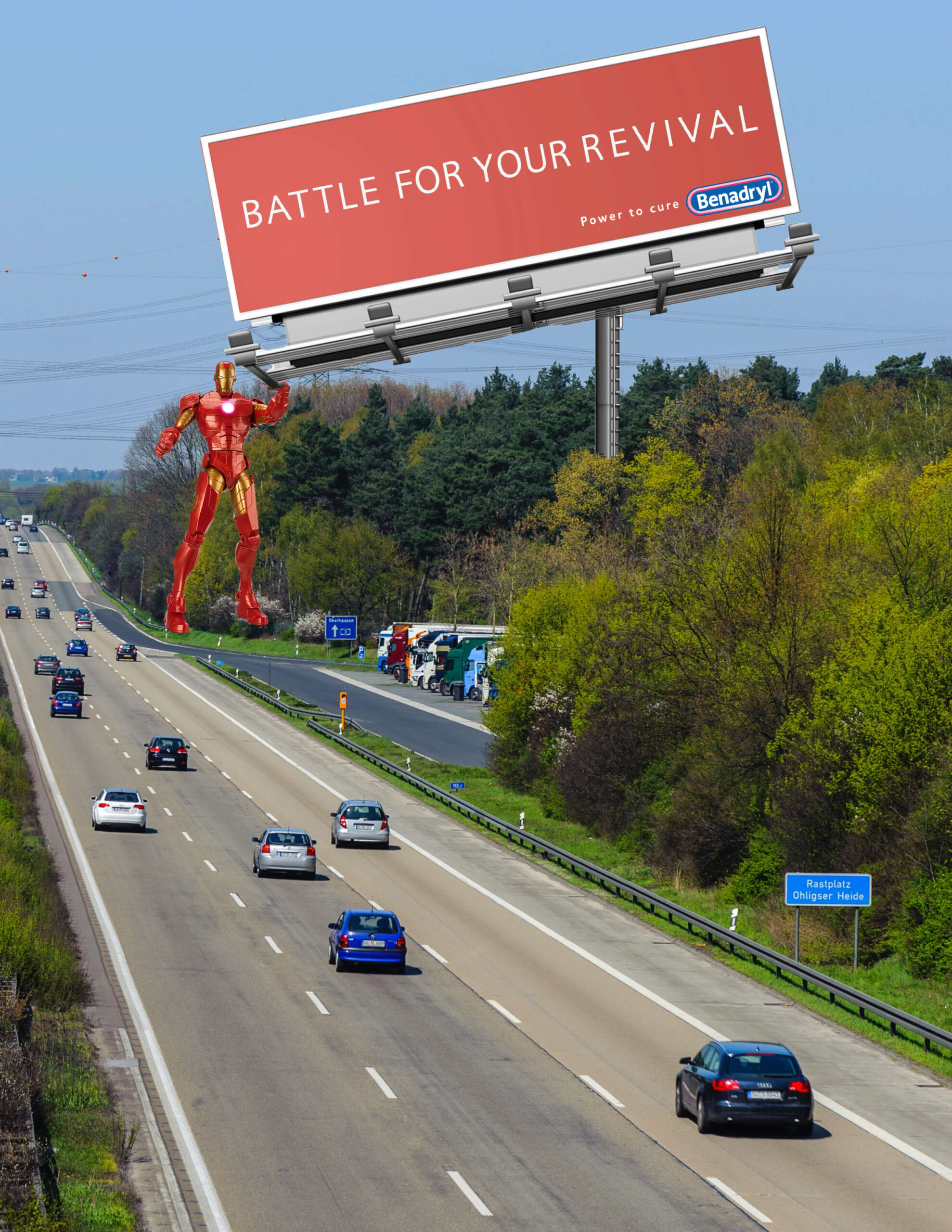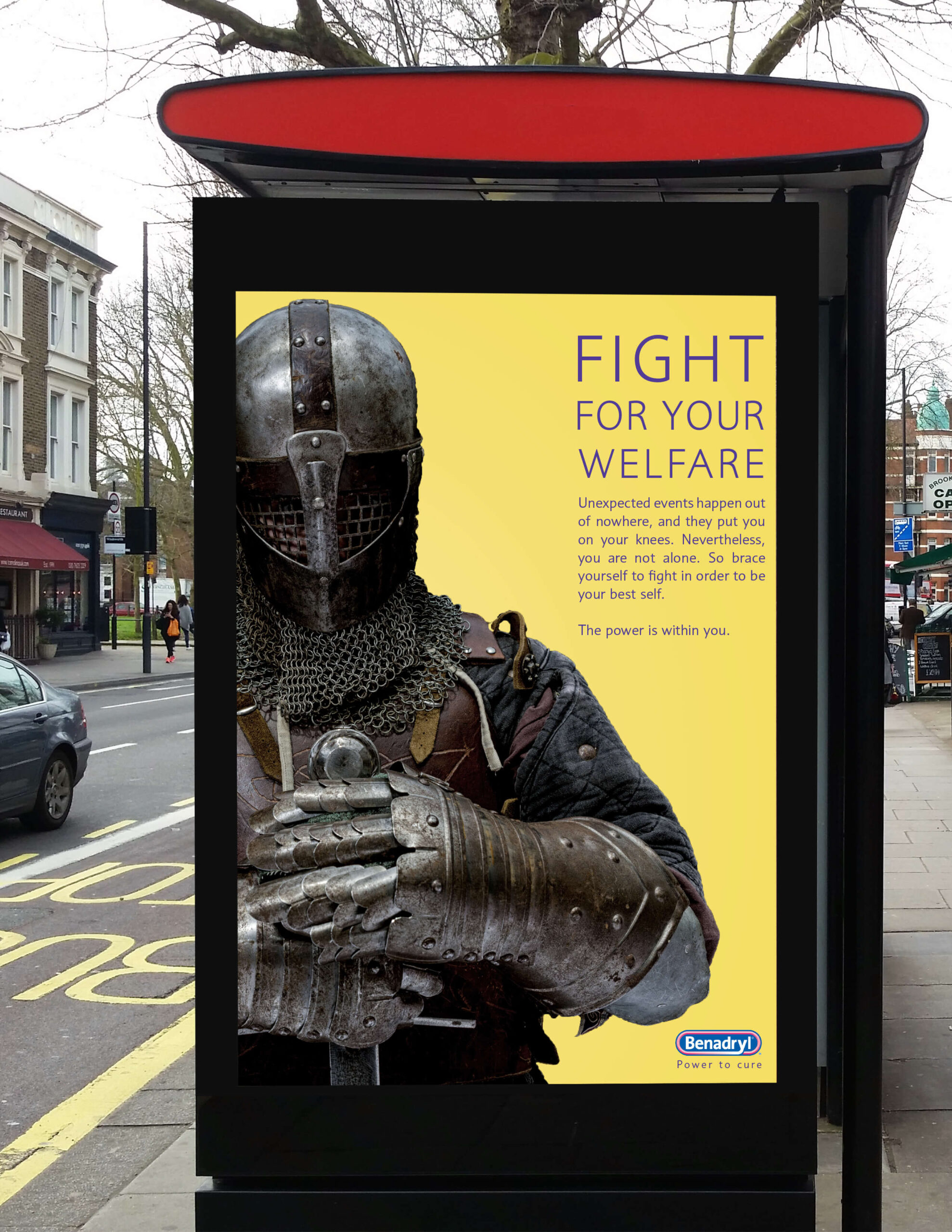 Benadryl has the “Power to cure.” The campaign demonstrates Benadryl is strong. Also, using Iron Man character, knight, and astronaut to appeal to the kids and young parents.